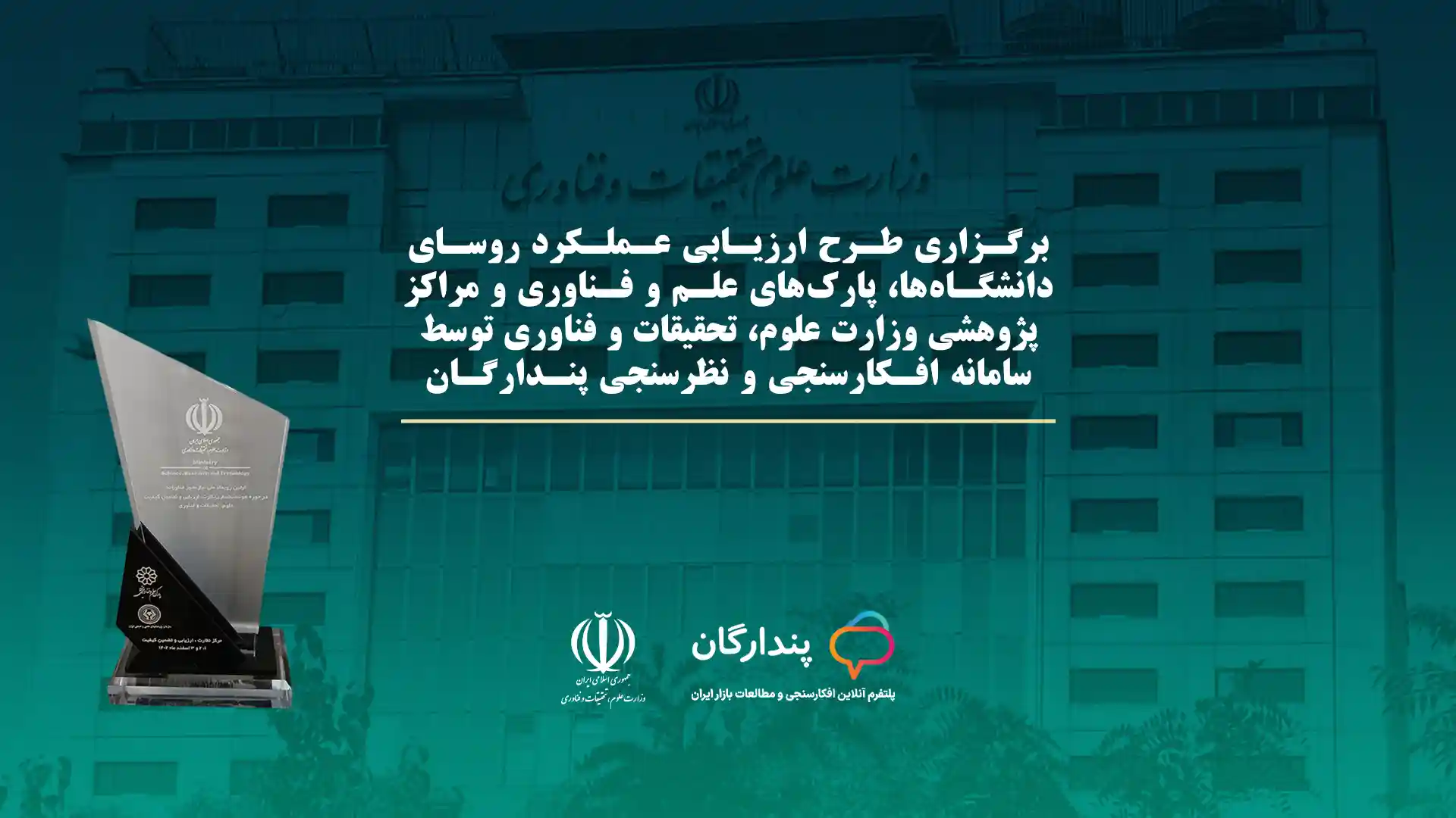شرکت کامراد پژوهان پارس با افتخار اعلام میکند که سامانه آنلاین افکارسنجی و نظرسنجی پندارگان، پس از شرکت در رویداد نیاز محور فناورانه وزارت علوم، تحقیقات و فناوری، از بین بیش از ۷۰ شرکت کننده، برای طرح ارزیابی عملکرد روسای دانشگاهها، پارکهای علم و فناوری و پژوهشکدههای زیر مجموعه وزارت عتف انتخاب شد. این نظرسنجی آنلاین از تاریخ ۹ اردیبهشت تا ۱۷ اردیبهشت ۱۴۰۳ برگزار گردید.